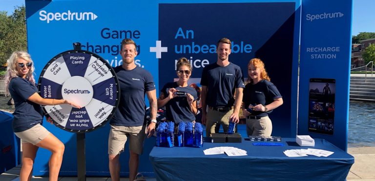 One of our most successful event staffing projects was the Spectrum Back to School College Tour. Our goal was to drive sales amongst off-campus students, educate students about Spectrum products and services, and drive awareness of the Back to School offer.